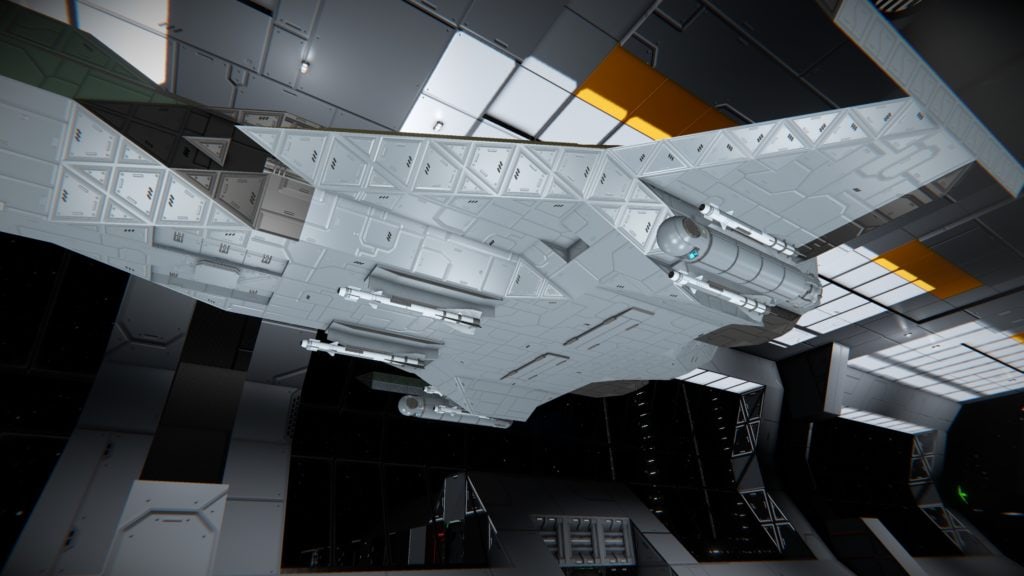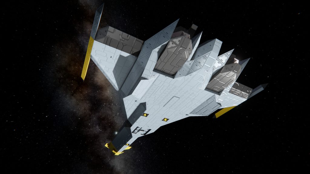 The main difference between the modded version and the vanilla version are the landing gears. I don’t like having landing pads or wheels sticking out from the bottom of the vehicle, and the shape of this ship would have made that a requirement. The modded version used to have a defensive shield, but I decided not to use that on the base model. Other versions might have it, but I feel the base model shouldn’t be decked out with all the bells and whistles, just have the occasional panel or hardpoint that implies a much greater potential.