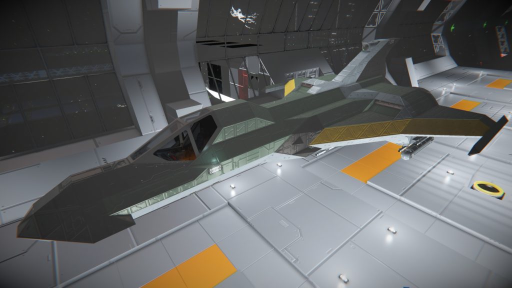 One last thing to note. While the vanilla and modded base models have the same magnetic plate as the carrier fighter version for the purposes of docking, the carrier version has an additional use. I built a gravity catapult to test it and the magnetic plate works perfectly as a ‘hook’ to keep the messer in place until its thrusters are fired up. Originally the catapult had its own holding plate but I wanted the fighter to be able to launch itself without any timer blocks being involved. (I still might add some to shut the catapult down post-launch though). Once the pilot’s ready, they can switch the holding plate’s lock state and they’ll be on their way. I’ll showcase the catapult once I’ve upgraded it and built a ship that can support it. The Heinrich wasn’t designed for that and the Dresden class I’m tinkering with is too compact to support any kind of craft, much less a launch catapult.